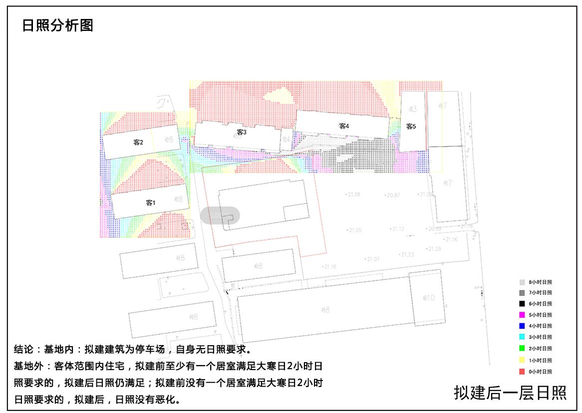 規劃條件:用地性質為社會停車場用地,容積率≤2.2,建筑密度≤70%,機動車位不少于88個。該處擬建一棟地下二層、地上三層立體停車樓,建筑高度11.3米,泊位94個,所報規劃方案的相關指標均符合規劃條件和國家法律法規相關要求,經專業咨詢機構日照分析,建設后基地內和基地外日照時數均滿足國家規范要求。