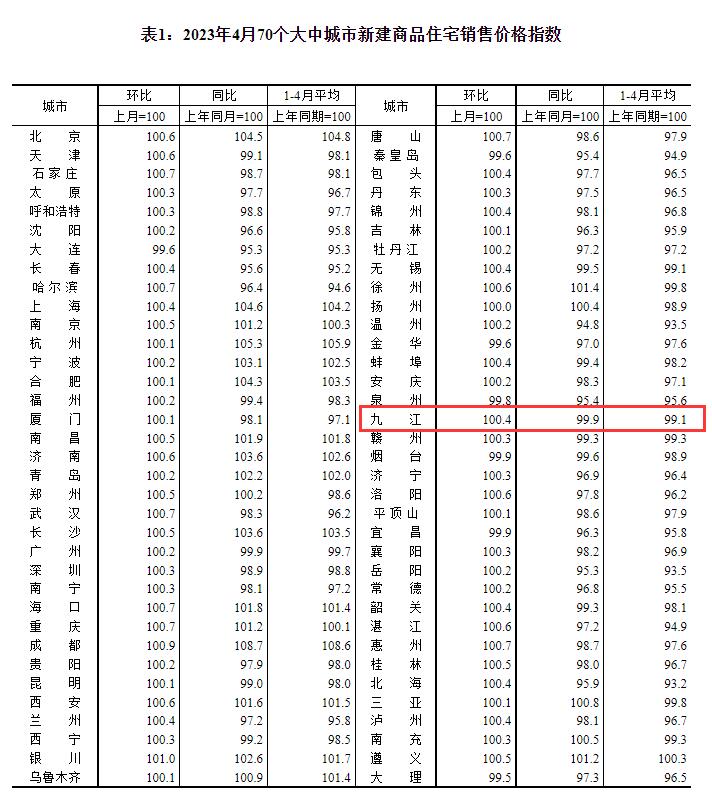 權威數據!4月九江新房售價環比上漲0.4%,二手房售價環比上漲0.3%!70城市商品房售價環比整體漲幅回落!